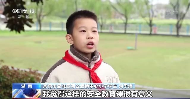 湖南省常德市鼎城区韩公渡镇中心小学学生 刘子熠:我觉得这样的安全教育课很有意义,让我们来到户外参与体验,提高了我们的防范意识和自救能力。