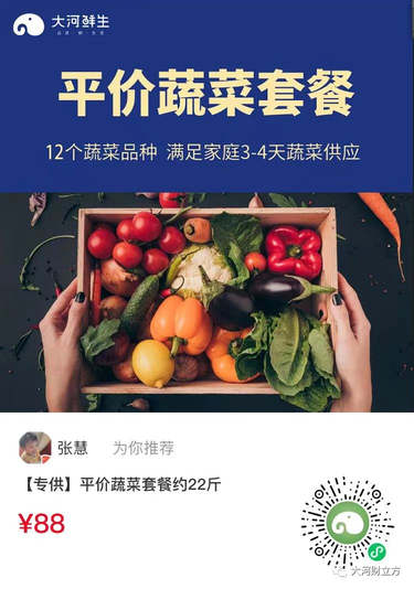 大河鲜生是郑州市防疫保供企业,在过往两年郑州历次保供服务中有着出色的表现。5月3日晚10点,该公司根据当日订单需求,向各级生鲜供应商发去了未来几天需对郑州加大供应的蔬菜清单。与此同时,该公司加强准时配送服务,并推出平价菜套餐——“每份12款蔬菜、22斤,可供一个普通家庭3到4天菜品用量”。