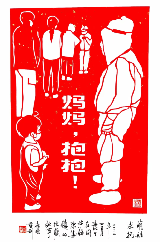 固始县非物质文化遗产民间剪纸艺术代表性传承人杨德鸿,目睹来自社会各界、爱心人士一场场无私捐赠,一个个志愿者紧张忙碌的身影,一幕幕动人心扉的感人场面,选取了三个真实故事,精心创作了三幅剪纸作品,用非遗人的方式讴歌战“疫”楷模,为打赢疫情防控的人民战争贡献出非遗人力量!