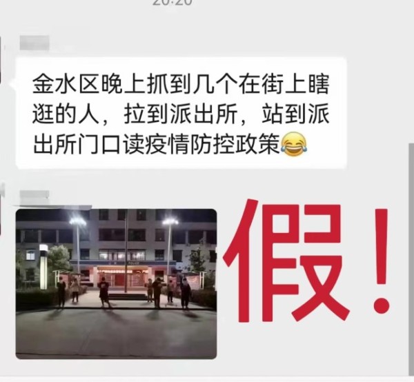 5月8日,一则郑州市金水区民警将多名夜晚在街上闲逛的人员带到派出所,并让他们站在派出所门口朗读疫情防控政策的消息,在不少微信群里被疯狂转载,引发众多网友关注。郑州市公安局相关工作人员称,该消息为不实信息。