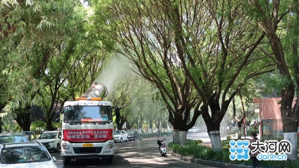 大河网讯 5月23日,在漯河市区的道路、公园绿地内,市城管局园林绿化养护中心的职工正在给柳树和杨树“打针”。