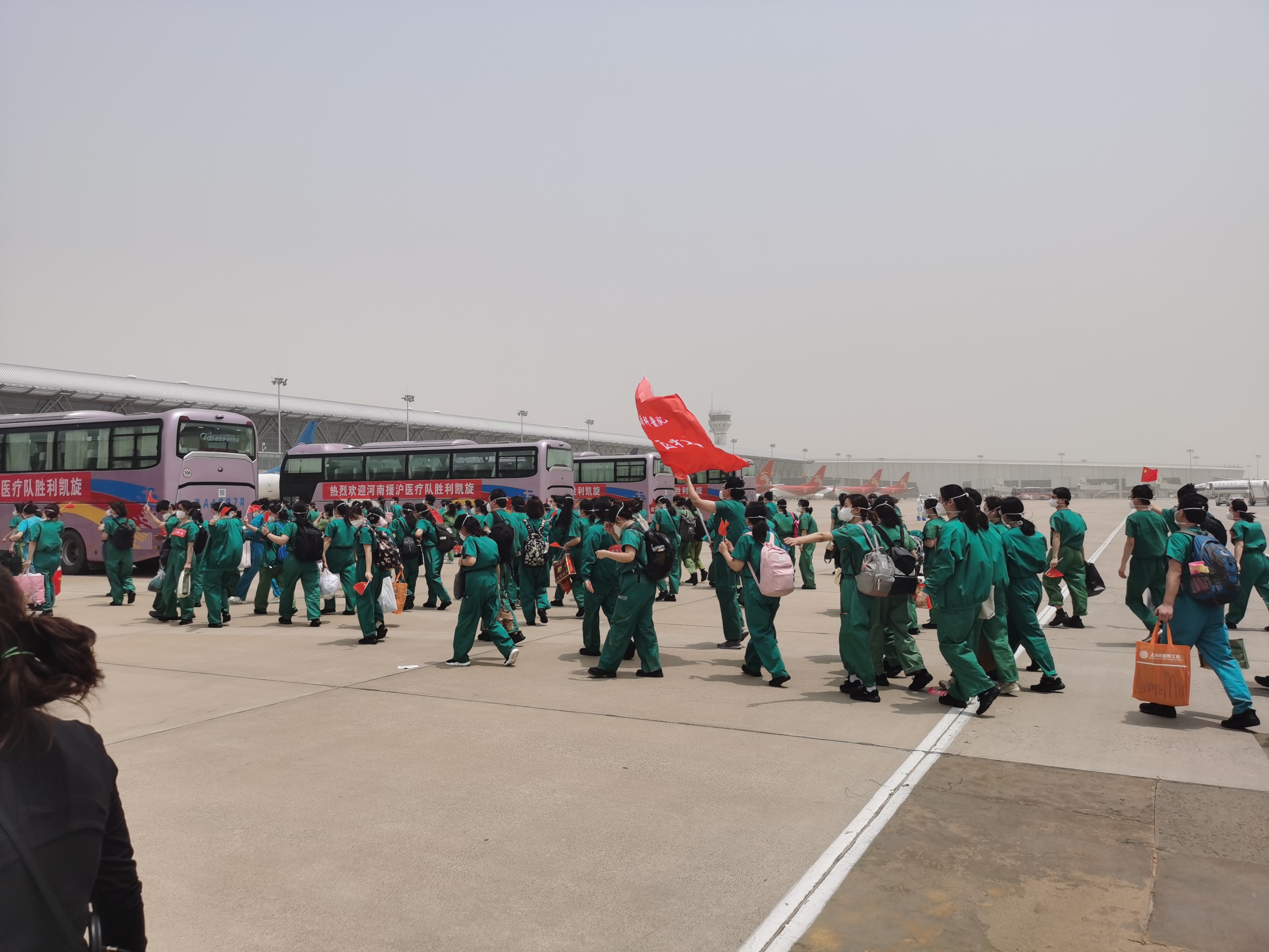 4月25日,结束援沪任务的河南医疗队返回离别已久的家乡,按要求隔离休整后,将再披战袍共同守护家乡父老健康。(祝传鹏 张黎光)
