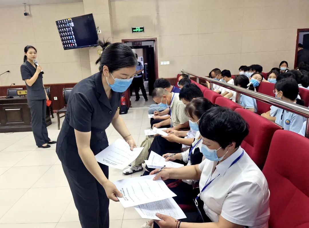 休庭期间,卢氏法院组织旁听人员进行问卷调查、现场互动,征求对案件审理的意见和建议,并进行了现场释法答疑。