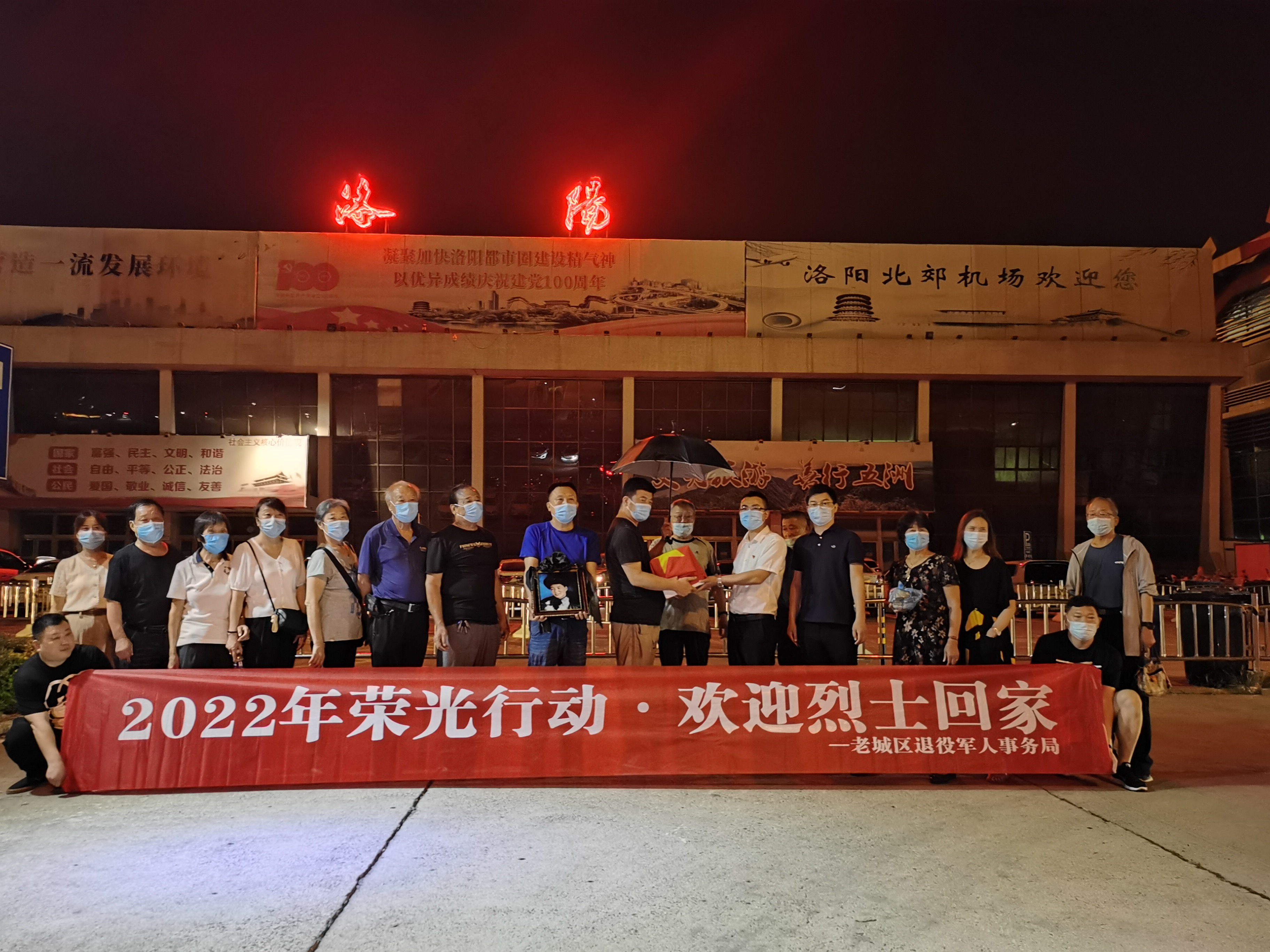 6月27日晚22点30分许,黑龙江省丰林县退役军人事务局工作人员护送着石树欣烈士骨灰乘飞机抵达洛阳北郊机场,并举行了庄重的交接仪式。