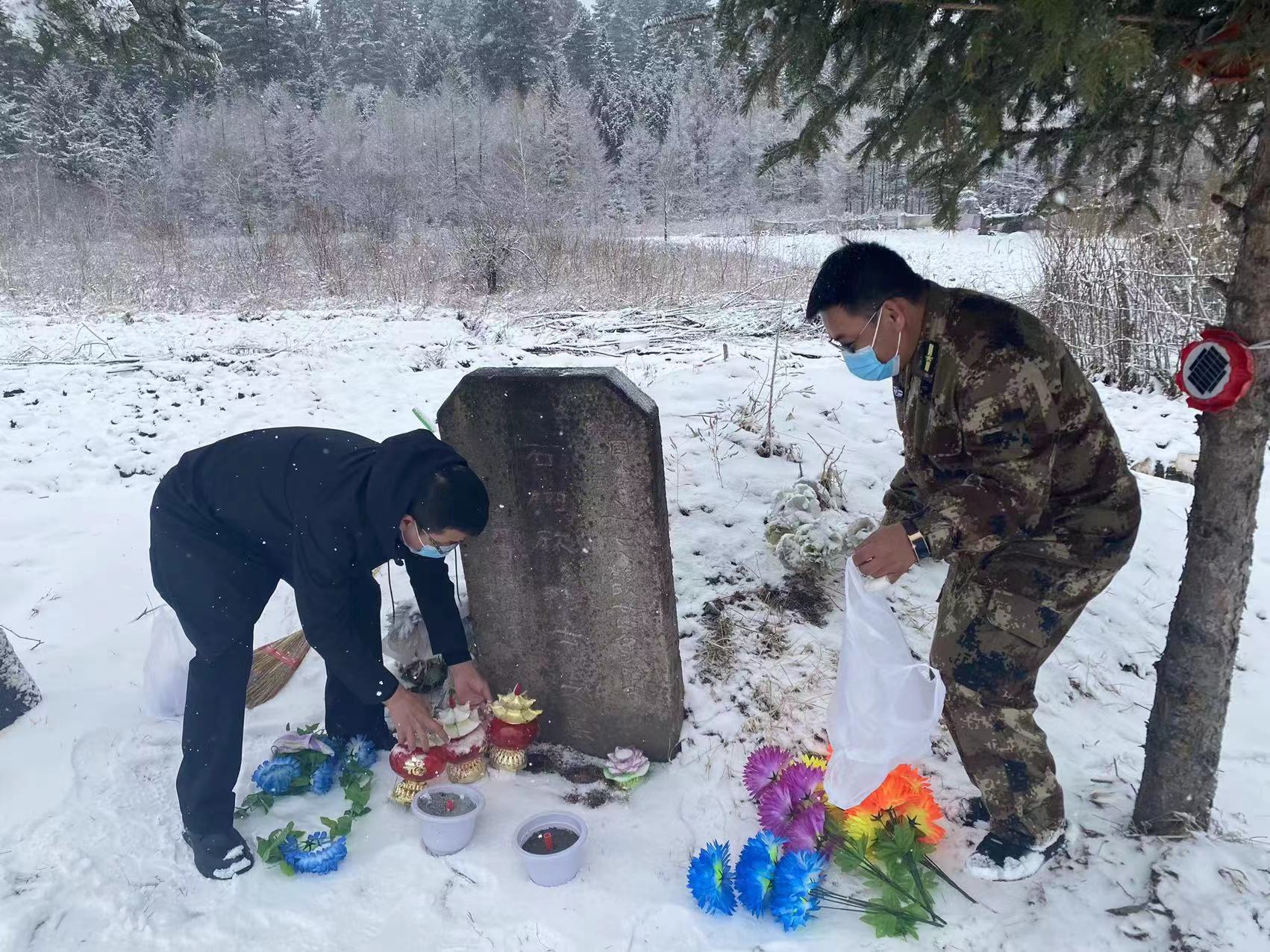 黑龙江省伊春市丰林县退役军人事务局工作人员祭扫场景照片