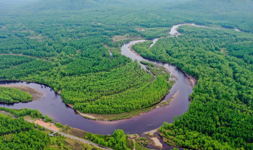 这是2021年6月8日拍摄的内蒙古呼伦贝尔根河源国家湿地公园(无人机照片)新华社记者 连振 摄