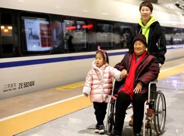 ◆全国第九届“好记者讲好故事”活动“最佳选手”董娉与家人在高铁旁合影