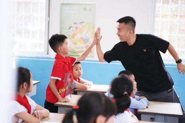 ◆全国第八届“好记者讲好故事”活动“优秀选手”王成龙在和学生互动