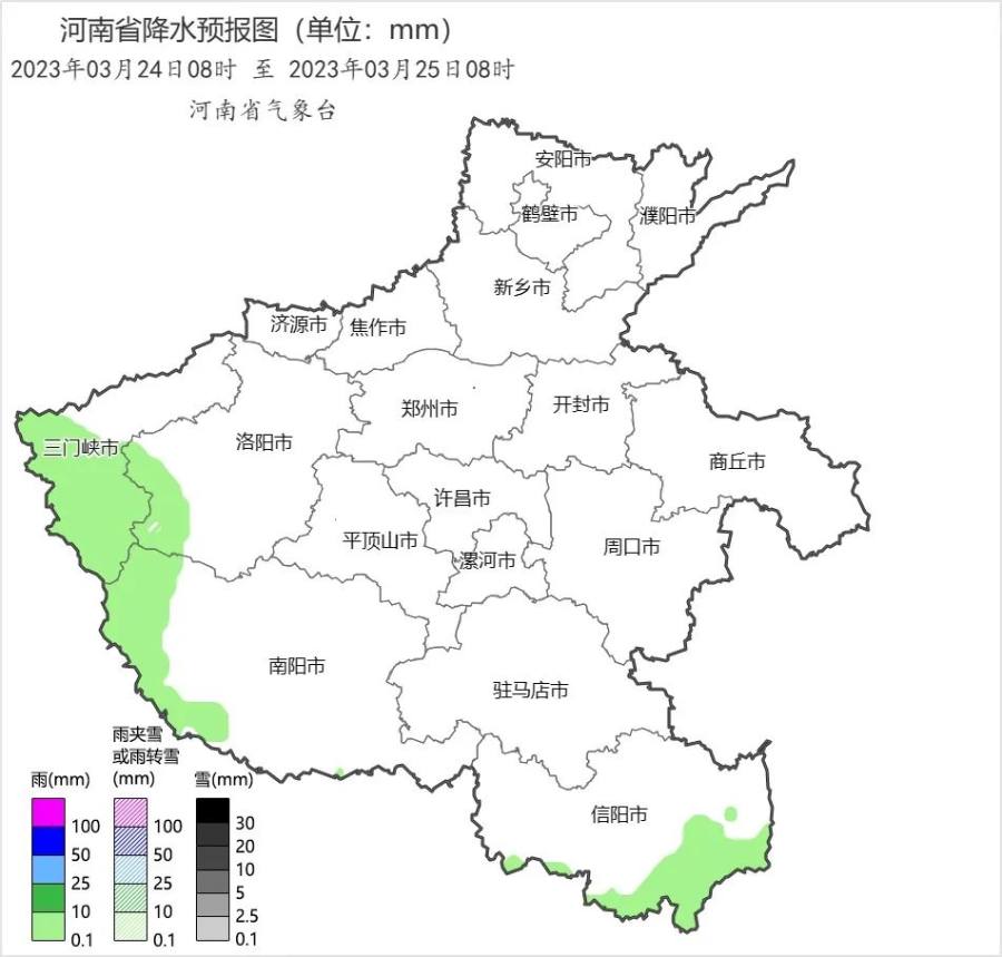 未来7天天气预报全省天气预报今天下午到夜里,全省阴天,黄河以南大部有小雨或零星小雨,西部高海拔山区有雨夹雪或小到中雪。全省偏北风4级左右,阵风6到7级,并伴有浮尘或扬沙。明天,全省阴天间多云,三门峡南部、洛阳南部、南阳西部、信阳南部部分县市有零星小雨。25到26日,全省阴天转多云。凌晨最低气温,西部0度左右,其中高海拔山区零下3度到零下1度,其他县市1到3度;东部局部将出现寒潮。27到28日,南部多云;其他县市晴天到多云。29日,南部阴天有小雨;其他县市多云。