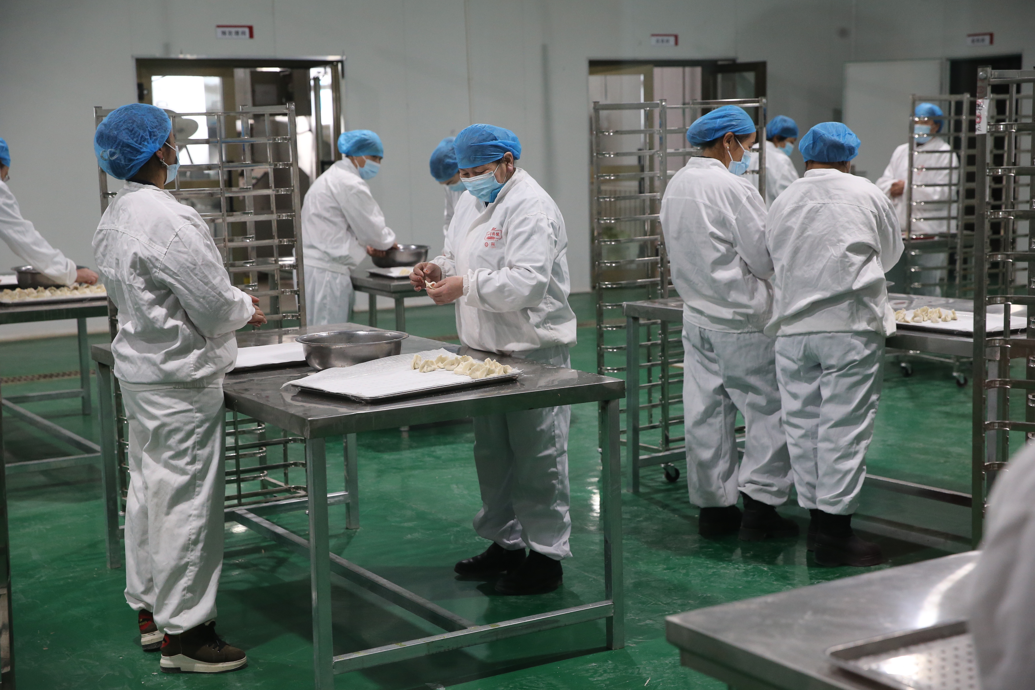 工人在新疆晋阳豫食品有限公司生产线上忙碌,该企业可有效带动当地农牧民就近就业130人左右。