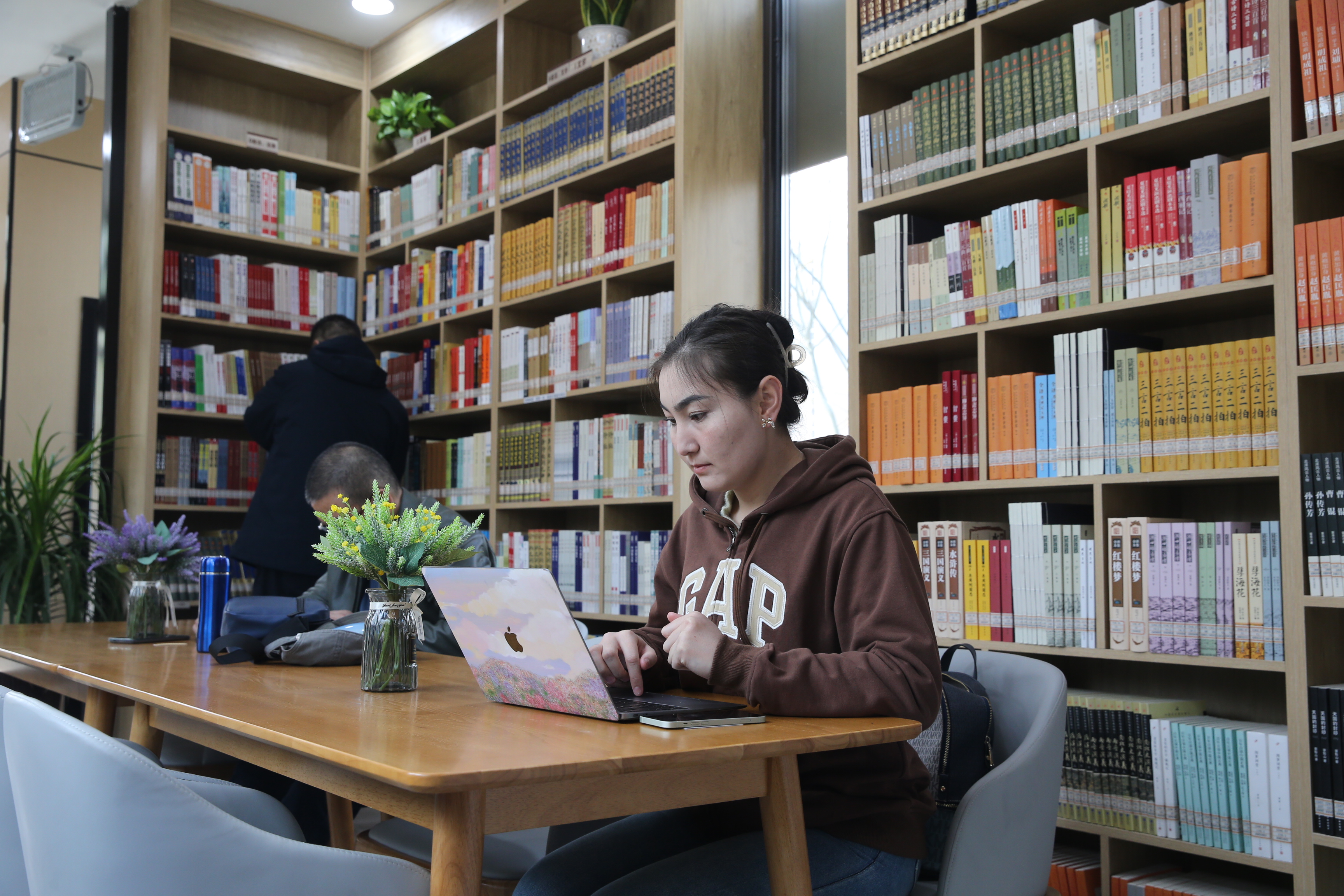 哈密市市民在智慧阅读空间豫园书房内阅读、学习。
