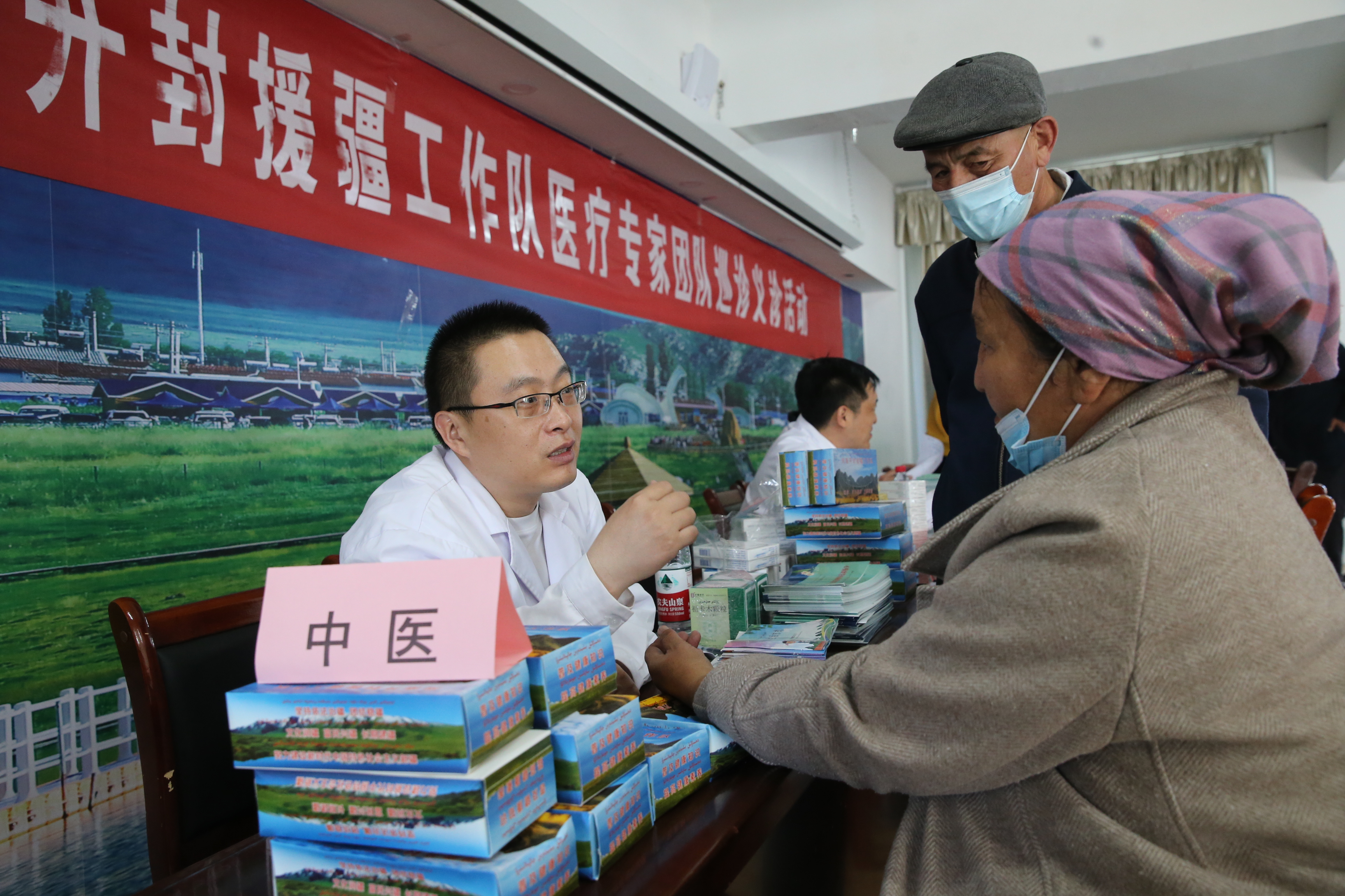 开封援疆工作队医疗专家在哈密市巴里坤哈萨克自治县海子沿乡尖山子村开展义诊活动。