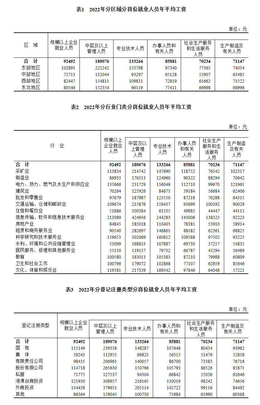 国家统计局发布2022年各行业领域平均工资情况