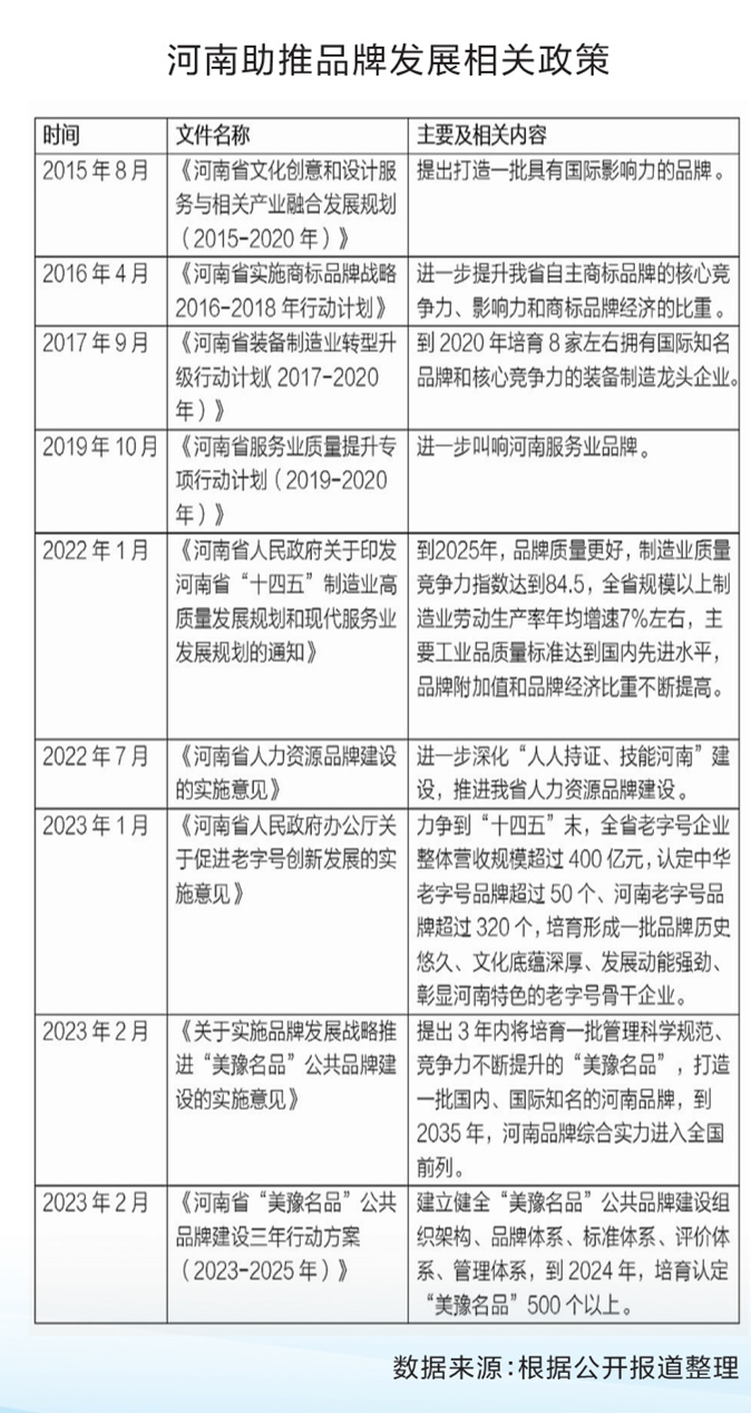 河南助推品牌发展相关政策数据来源:根据公开报道整理