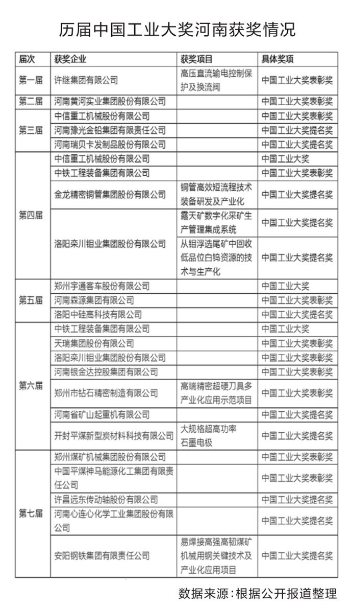 历届中国工业大奖河南获奖情况数据来源:根据公开报道整理