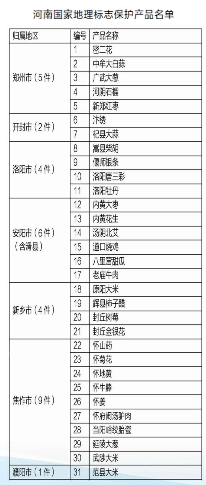 河南国家地理标志保护产品名单截至2022年6月1日,数据来源:河南省市场监督管理局
