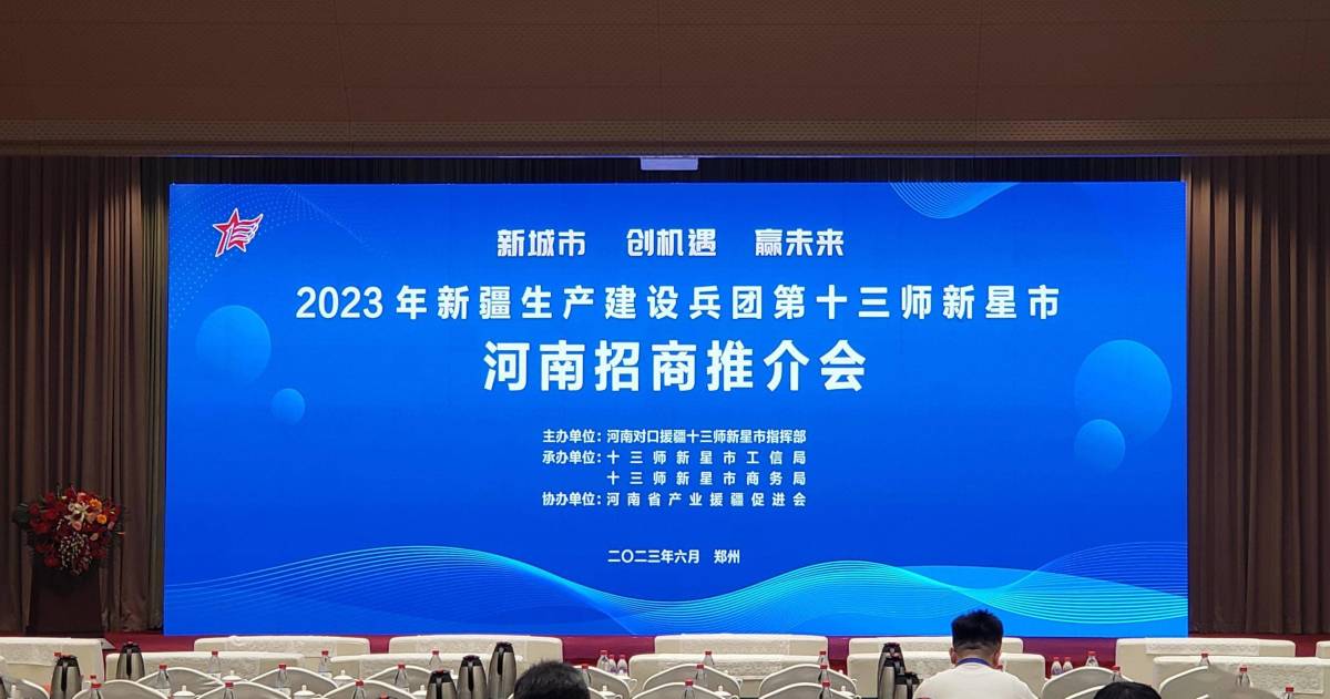 6月20日下午,“新城市 创机遇 赢未来”2023年新疆生产建设兵团第十三师新星市河南招商推介会在河南省郑州市隆重举行,现场签约项目14个,签约金额60.05亿元。