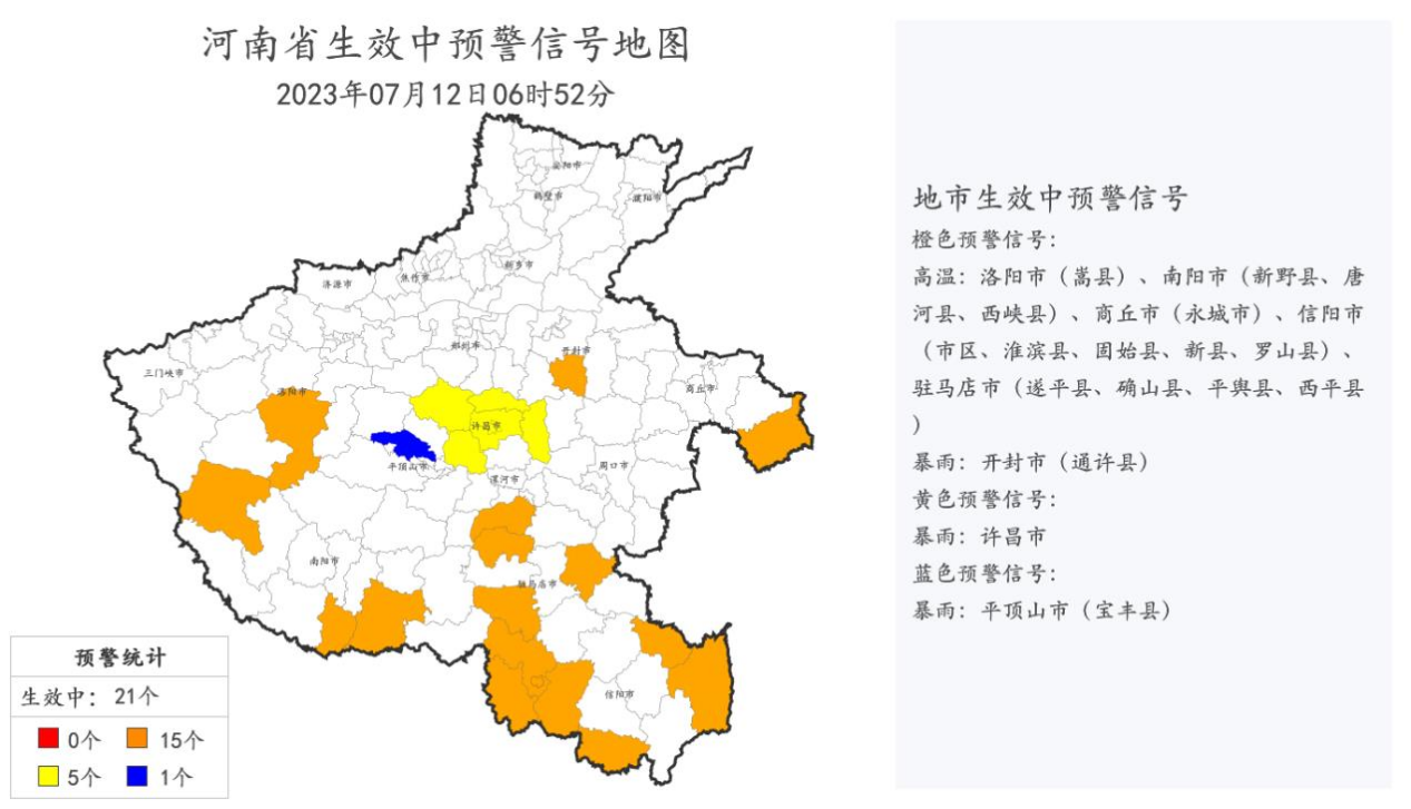 2023年7月12日6时52分生效中的预警信号