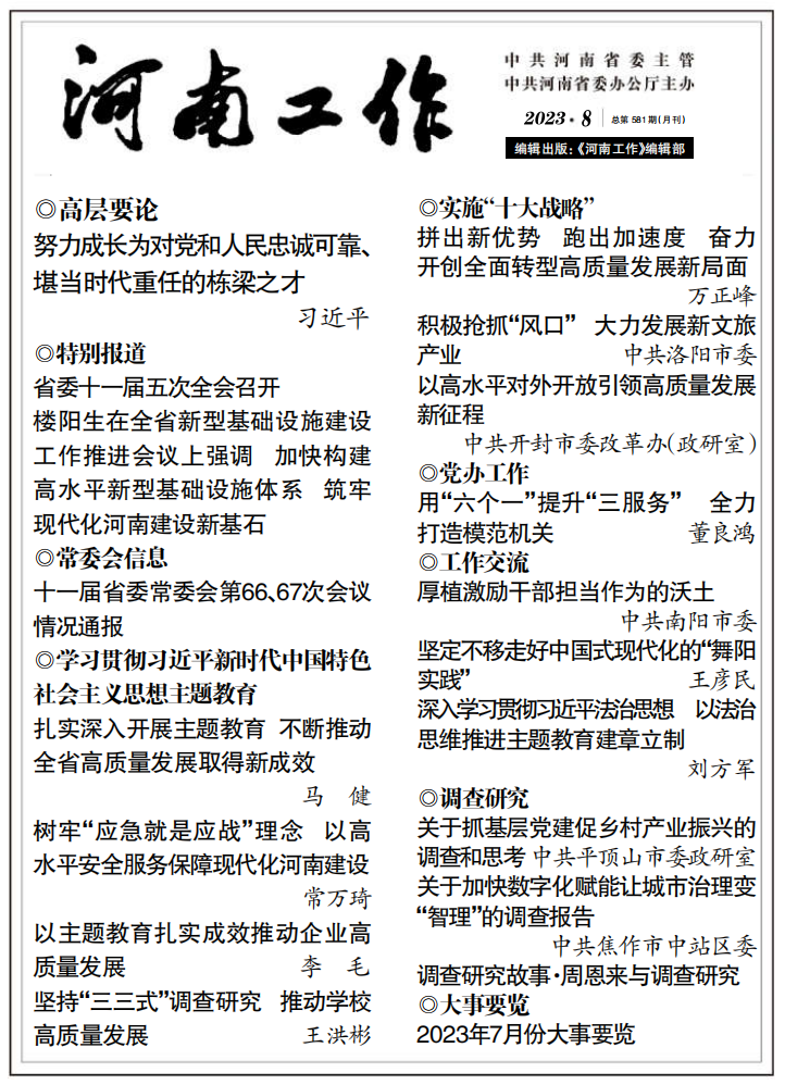 《河南工作》2023年第8期 总第(581期)目录