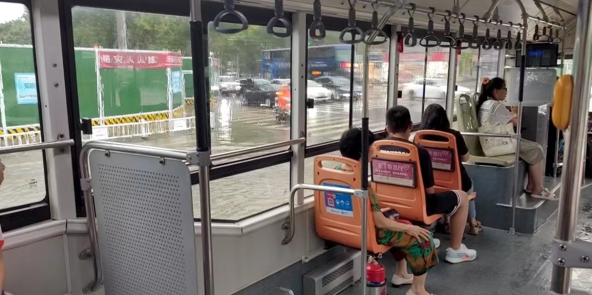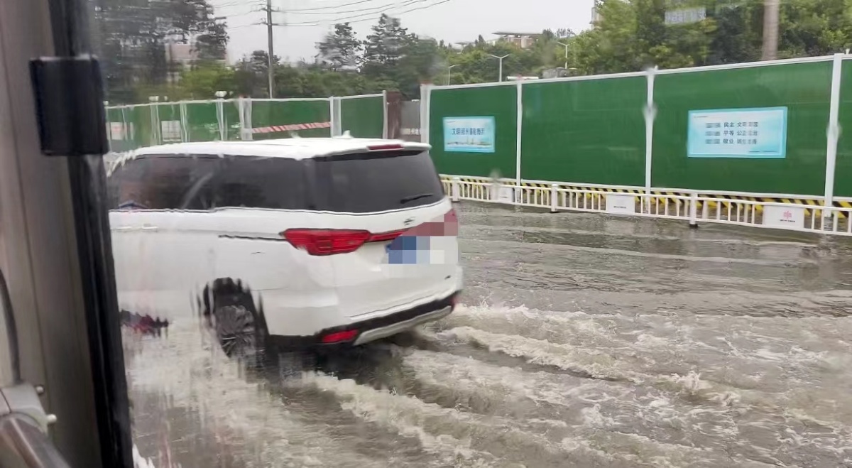 直击!郑州有路段已积水,公交车“破浪”前行,正常通行