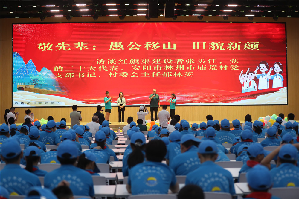 团十九大代表李媛和第七届“安阳青年五四奖章”获得者、安阳市内黄县返乡创业青年代表王卫超也来到现场,给孩子讲述新时代青年传承红旗渠精神、拼搏奋斗的青春故事。