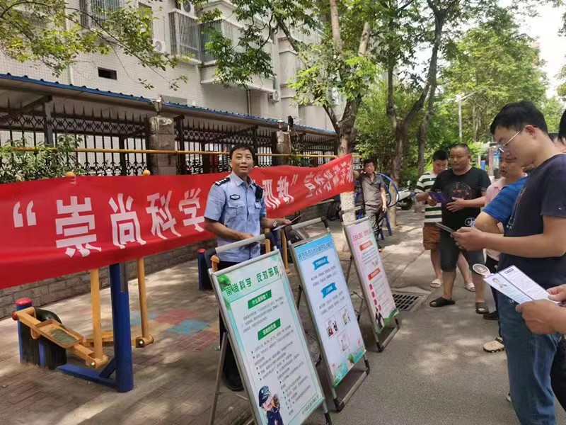 邪教给国家政治稳定、社会安全稳定和人民生命财产安全带来极大危害,必须坚决抵制防范。为加强社会治安防控体系建设,在“豫筑平安”夏季治安打击整治中,郑州市公安局金水分局丰产路派出所结合“对邪教说不”网上签名活动,组织社区民警、辅警深入居民小区、门面店铺、公司企业,深入开展“崇尚科学 反对邪教”警示宣传教育,提高辖区居民群众抵制防范邪教的意识和能力,构建筑牢全民反邪坚实防线。