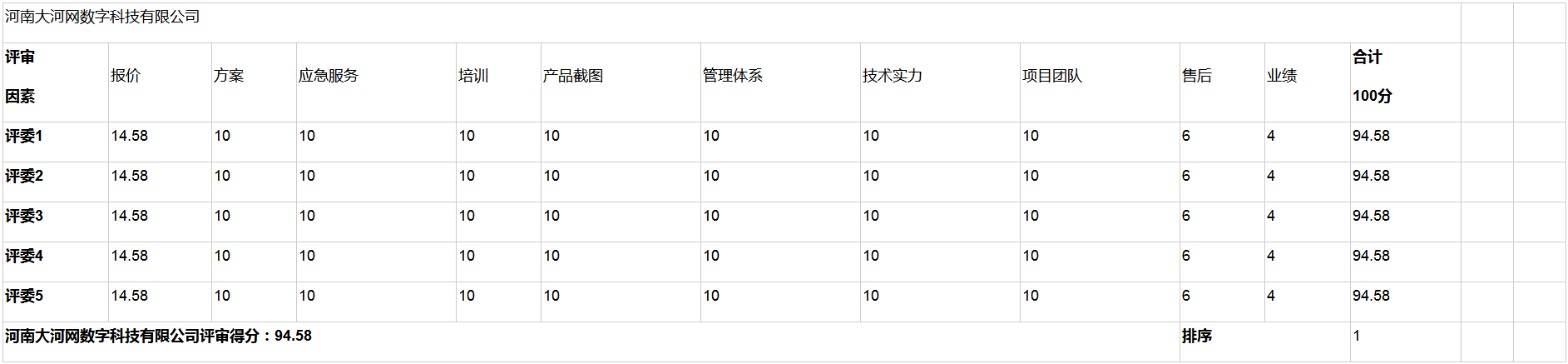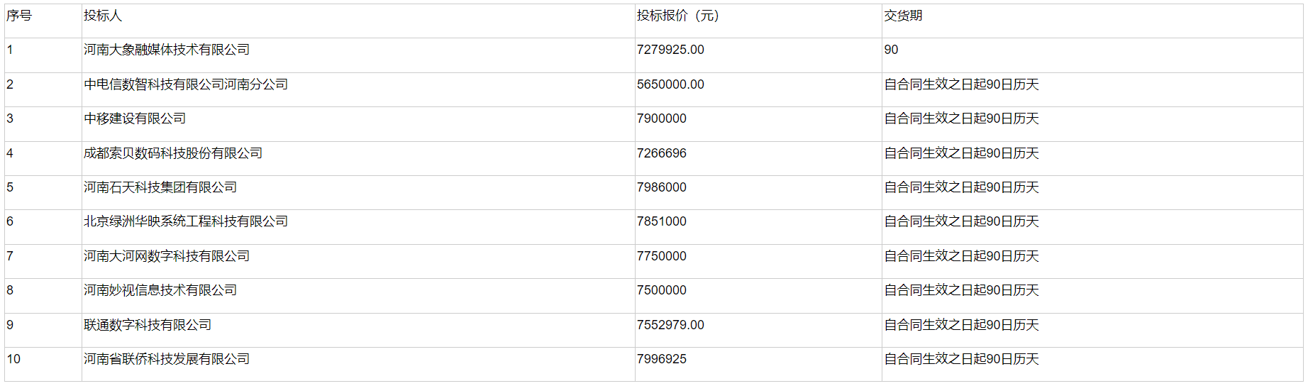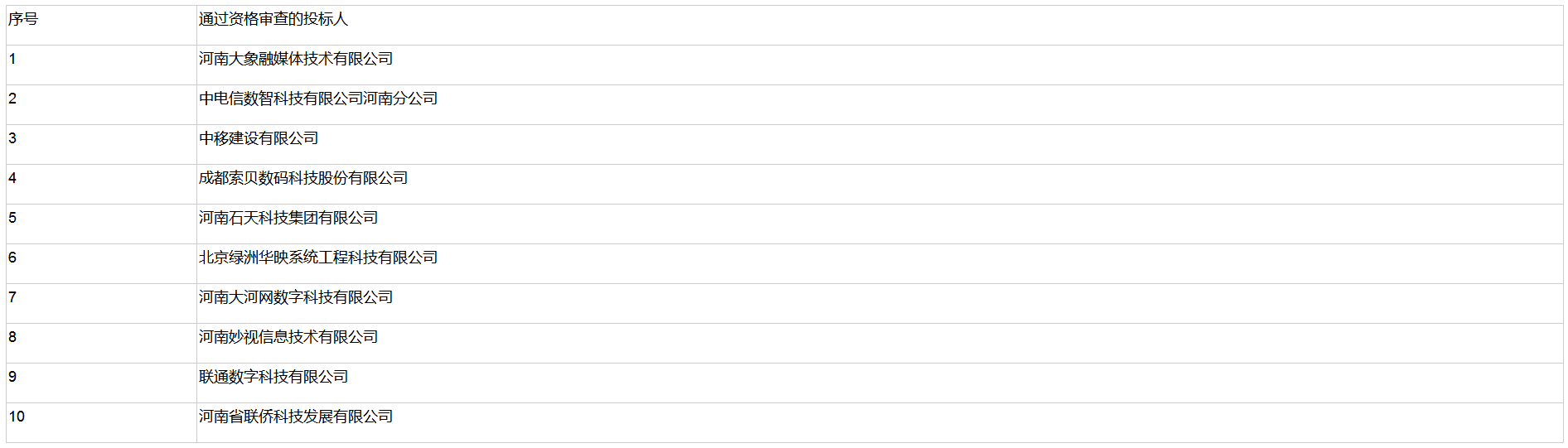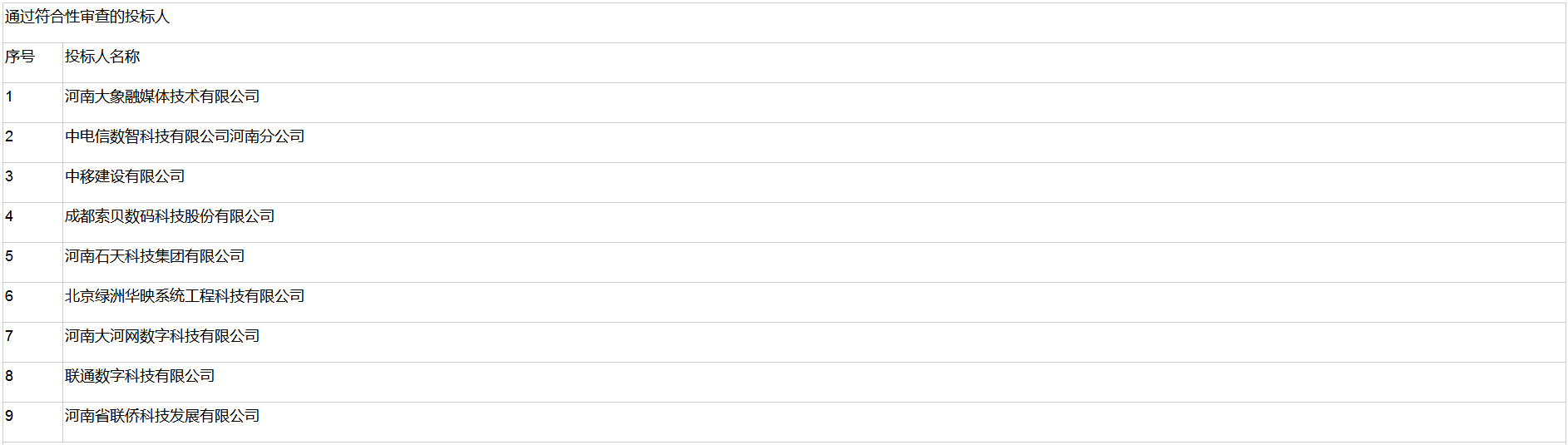 (一)中标人候选人名称:河南大河网数字科技有限公司