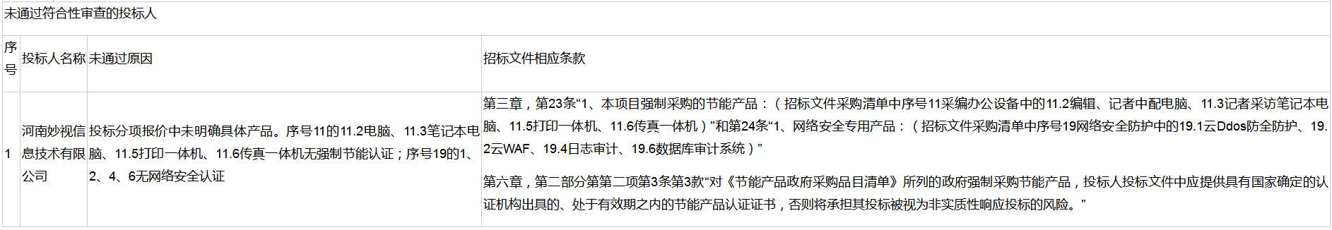评标委员会审查未通过的:无