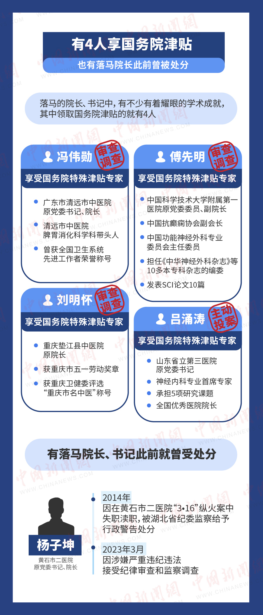 中新网注意到,也有落马院长、书记此前就曾受处分。3月21日,黄石市二医院原党委书记、院长杨子坤因涉嫌严重违纪违法,正接受纪律审查和监察调查。据媒体2014年9月报道,7名干部因在黄石市二医院“3·16”纵火案中失职渎职被追责。其中,湖北省纪委监察给予黄石市二医院党委书记、院长杨子坤行政警告处分。(完)