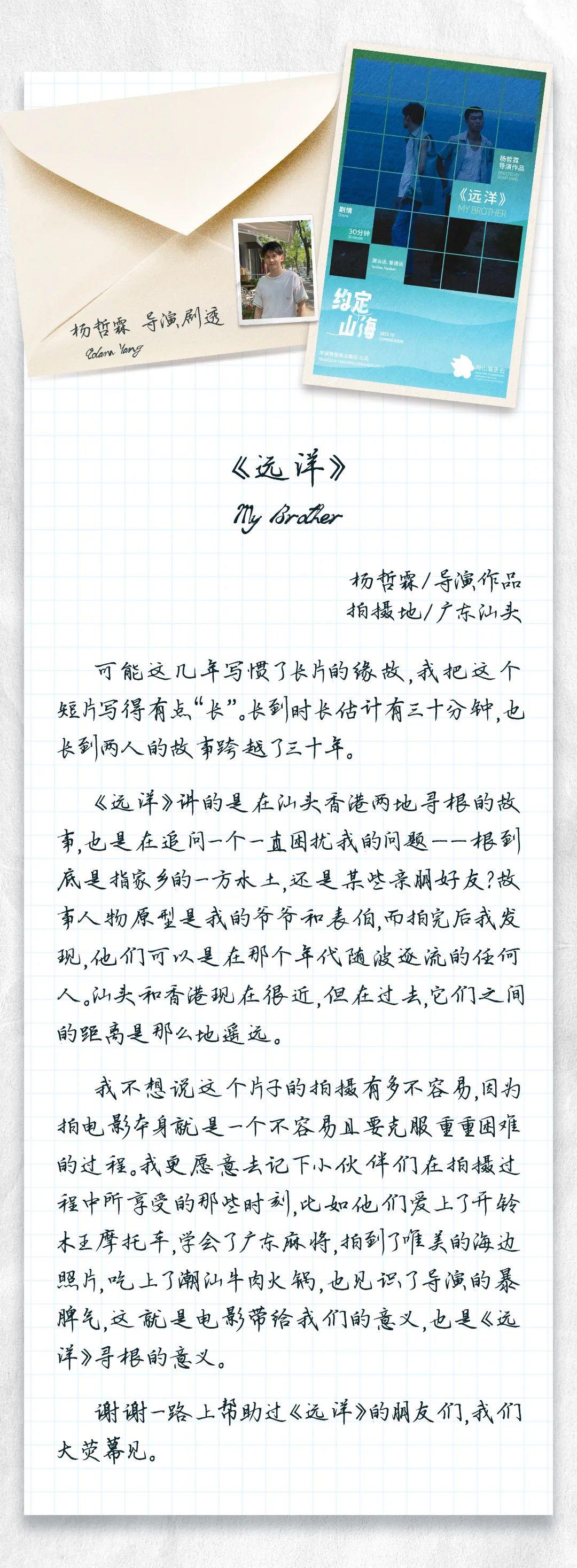 由羊城晚报报业集团主办的2023“向山海走去”青年导演创作扶持计划短片合集顺利杀青,短片《远洋》幕后花絮首发!