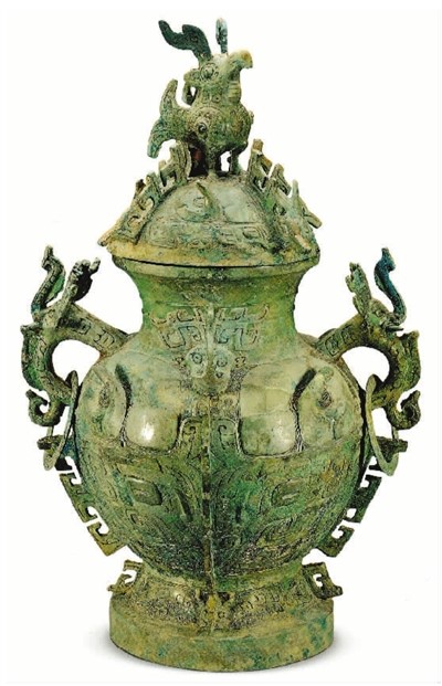 西周立鸟盖悬铃铜罍,随州市博物馆藏。