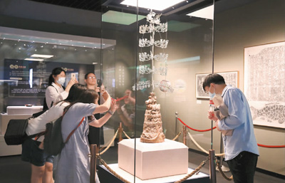 观众欣赏来自绵阳市博物馆的东汉摇钱树。