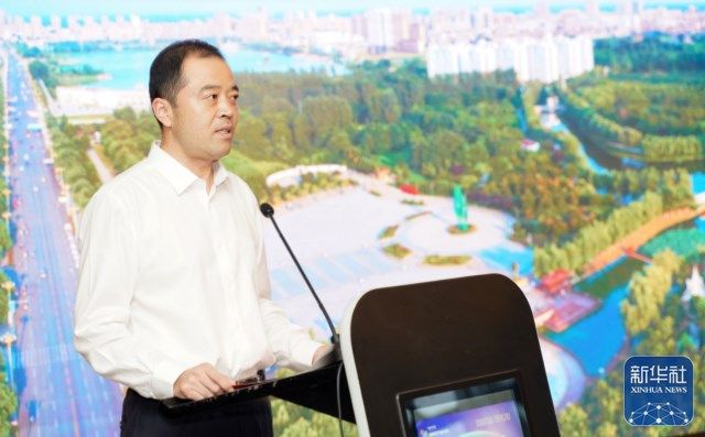 柘城县委书记王景宇在2023金刚石产业大会商丘专场活动上发布“钻石之都”产业蓝图。马健 摄