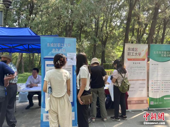 不久前,北京地坛书市里设置的东城区老年开放大学招生点位在社交媒体上意外出圈,许多年轻人慕名前去。