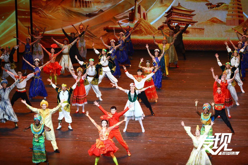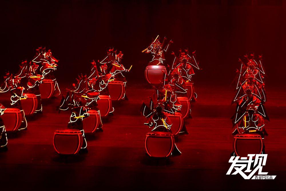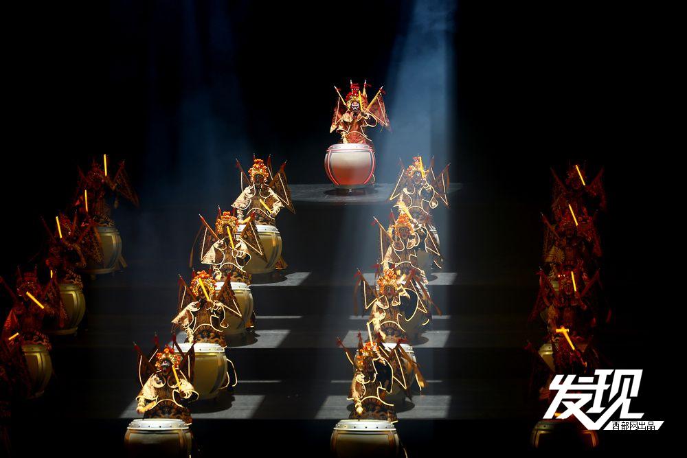 《和鸣》篇章中,在光影交错、鼓声震天、秦腔嘶吼中,展现古老文明和现代科技的对答与畅想,奏出世界多元文化的和鸣。