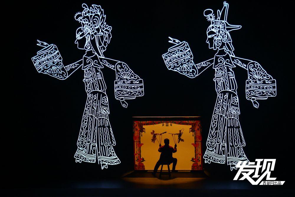 《影人》篇章中,电音和老腔碰撞,传统与当下对话,真人与皮影共同演绎《封神·黄河大阵》,结合特效和舞台变化,在真实与虚幻间穿梭。