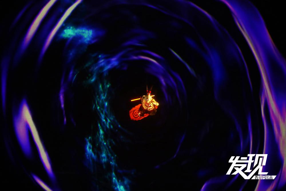 《万象》篇章中,以魔术的理念将杖头木偶戏与全息技术结合,人物在《西游记》的故事背景中上天入地,穿行变化在共建“一带一路”国家风情各异的奇幻场景中。
