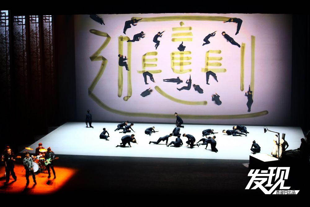 《长安》篇章中,扯面手艺人的现场操作,表演区演员的肢体,立面背投幕的影像,共同构成一幅幅具有随机感的奇思妙想的画面,配合本土乐队的现场演唱,营造出诙谐生动的氛围。