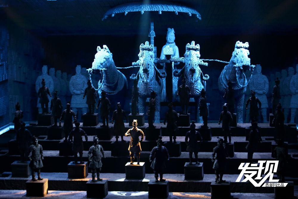 《传奇》篇章中,兵马俑阵列在数字时代的虚拟宇宙中苏醒,动态装置兵马俑与新媒体艺术视觉构建的宏大时空场景,回望和续写中华文明基石的永恒传奇。