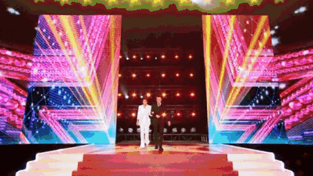 想象中的场景,可能是在聚光灯下,伴着丁达尔现象投射的粉尘光柱,看他带着招牌笑容走来;也许是在幕布后边黑乎乎的候场区,看他熟练地绕开脚下的各种道具和电缆,拿着题词手卡和工作人员讨论细节;又或者是在一个灯火通明的圆形会议室里,看他坐在有他名字的桌牌前,握着桌上的台式小麦克风发言……