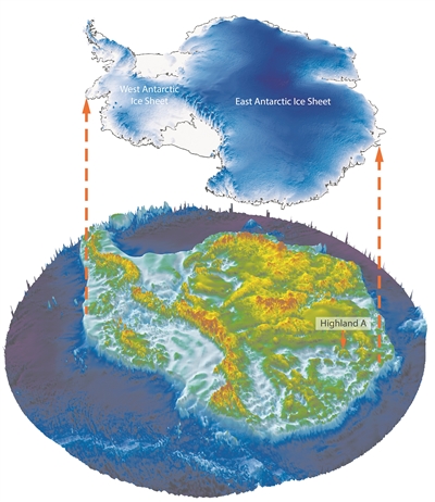 英国杜伦大学科学家团队用卫星和雷达分析了名为“奥罗拉-施密特”盆地南极东部冰盖下的地貌,该盆地位于丹曼和托滕冰川的内陆。他们发现这里的地貌由三个被深槽分隔的河蚀高地块组成,距离冰盖边缘仅350公里。这些地块的形成早于冰川形成,当时河流流经这一地区,流向冈瓦纳超大陆解体过程中开辟出来的海岸线。冈瓦纳超大陆的解体还导致高地间形成谷地,然后高地才开始被冰川覆盖。团队认为,这一地区覆盖的冰在数百万年间基本保持稳定。