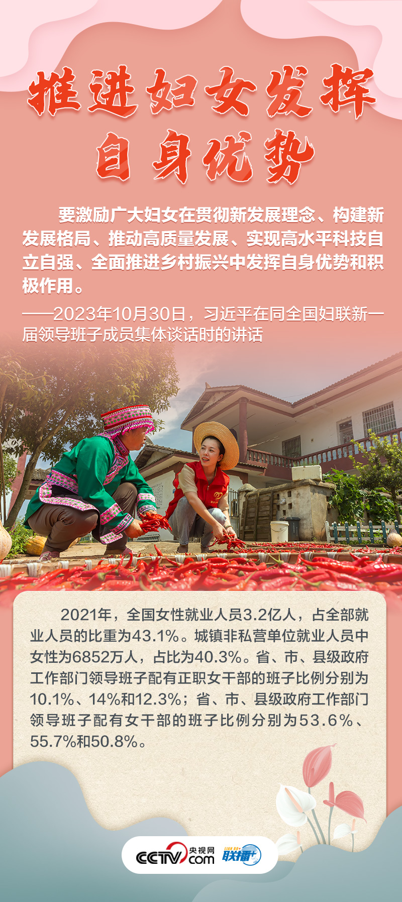 “妇联是党和政府联系妇女群众的桥梁纽带。”10月30日,习近平总书记同全国妇联新一届领导班子成员集体谈话并发表重要讲话,高度肯定巾帼力量,并为新形势下妇女事业和妇联工作发展指明方向。