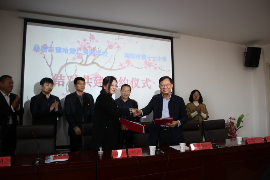 签约活动由哈密市伊州区教育局相关负责同志主持,签订结对共建框架协议旨在充分发挥教育援疆作用,有效促进豫哈两地学校在教学理念、教学管理、教学改革、师资队伍建设等方面的交流提升,南阳市第十七小学与豫哈第二实验学校共同协商决定开展结对帮扶共建活动,在学校管理、教师专业化成长等方面开展学习交流,建立资源共享、成果共享的交流合作机制,力争开拓豫哈两地合作共建新模式,打造河南教育援疆新名片。