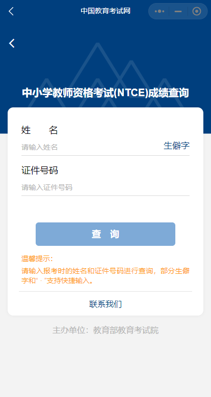 使用微信App搜索“中国教育考试网”小程序进行查询”。