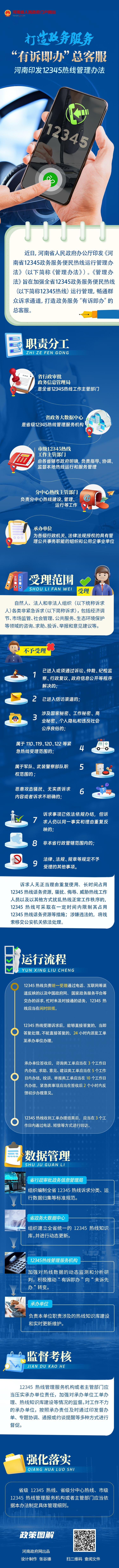 “可以预见,在《管理办法》的规范引领下,河南12345热线将持续提升诉求解决率和群众满意度,让人民热线更好地服务人民,为我省进一步推动政府职能转变,优化营商环境,建设人民满意的服务型政府保驾护航。”杨凯瑞表示。(文字/马娟 图解/张谷臻)