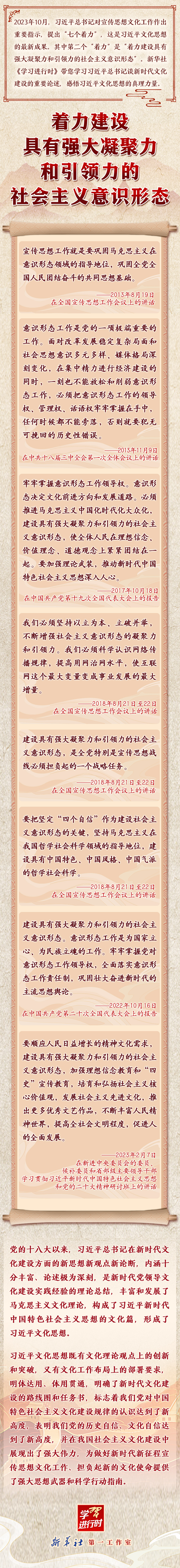 学习进行时丨领悟习近平文化思想系列之二:着力建设具有强大凝聚力和引领力的社会主义意识形态