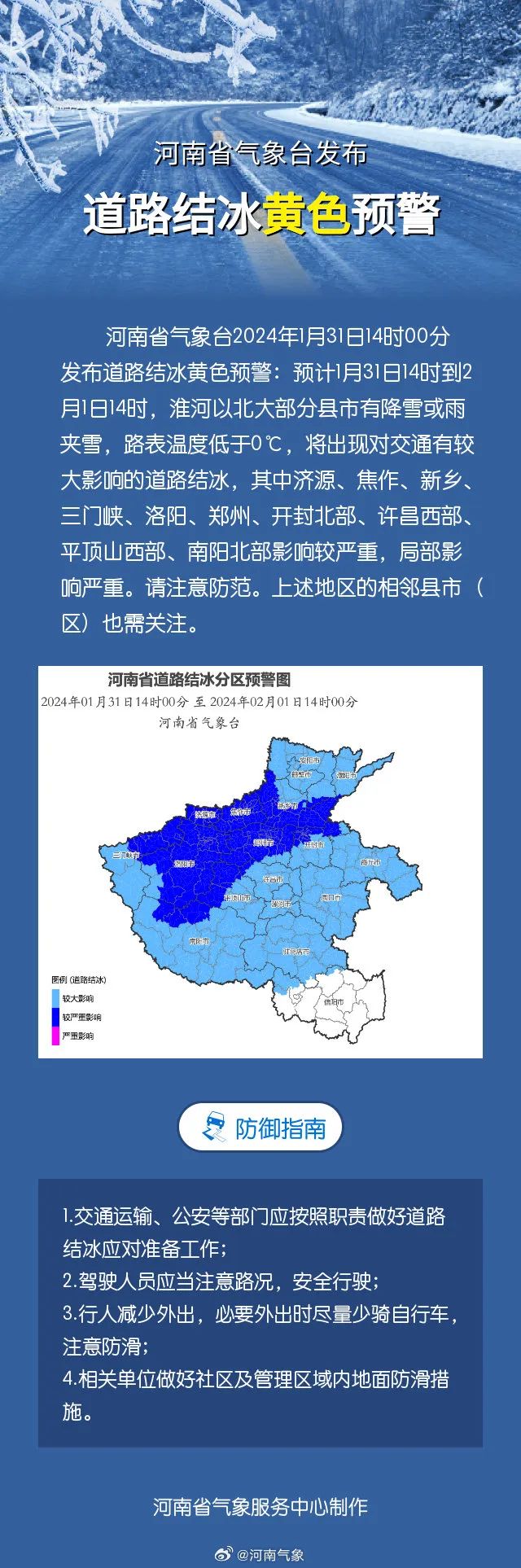 河南省气象台发布道路结冰黄色预警