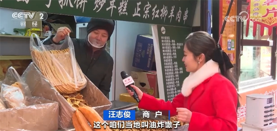 商户 汪志俊:这个我们当地叫油炸馓子,这是油炸花花,那个是油炸“草果”。