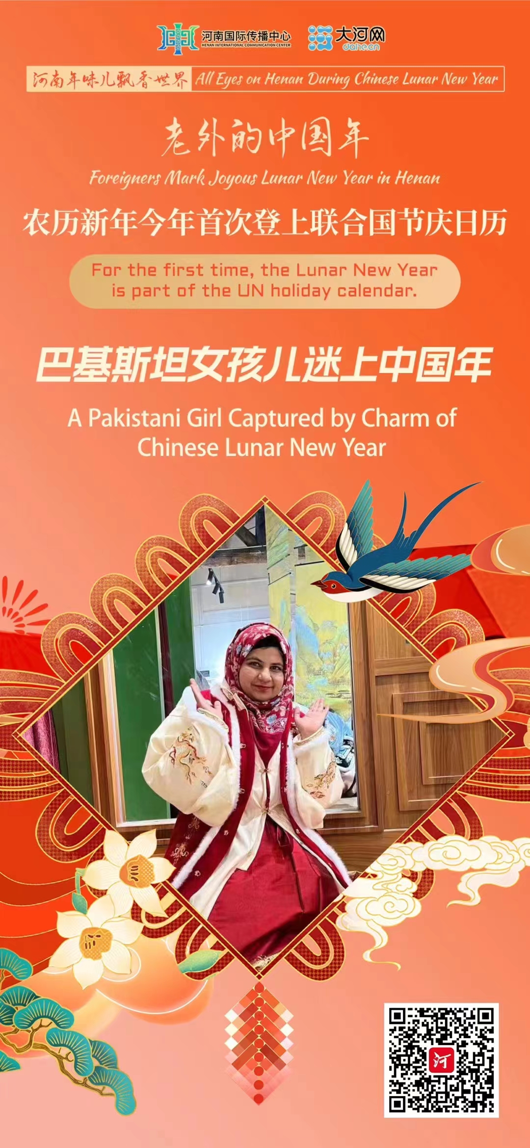 如今,努兰早已爱上了河南的春节文化,这也为她了解更为丰满的中国提供了一扇窗口。“在巴基斯坦,开斋节和古尔邦节是最重要的两个节日,都没有放这么长的假。中国春节却有一周的时间让大家放下繁忙的工作和生活,回到家乡与亲人团聚,一起开心,十分有意义。”努兰说,春节让她对中国的家庭观念、亲情观念有了更深层次的理解。