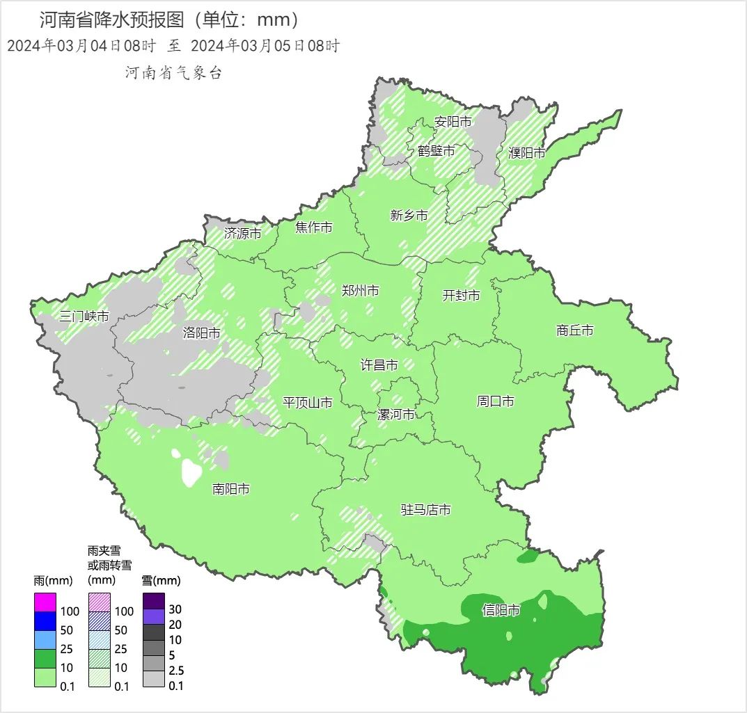 4日,全省阴天,大部有小雨,东南部部分县市有中雨,西部、西北部高海拔山区有雨夹雪或小雪。